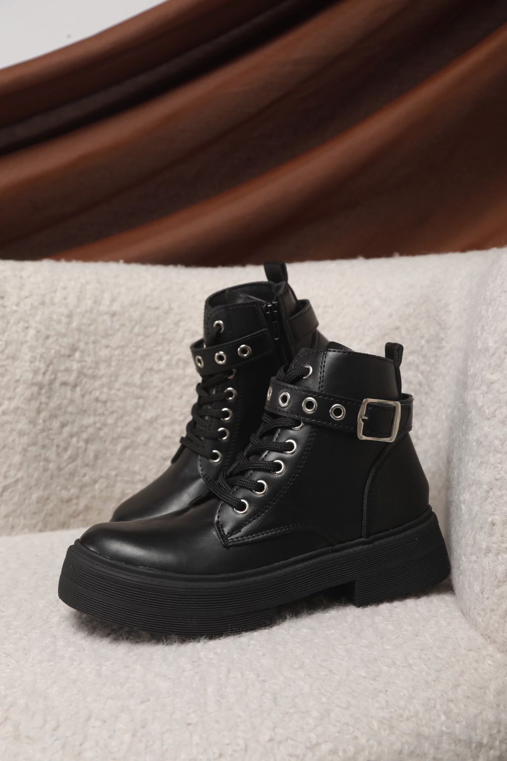 Borcegos Megan disponibles en un elegante color marron y negro.